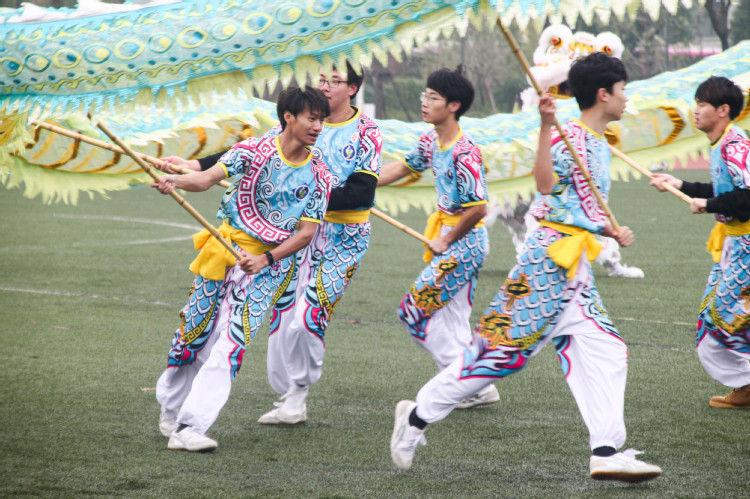 开幕式表演以舞龙、彩带龙开场,甚是壮观,赢得了阵阵喝彩声。体育舞蹈将特色的健身操结合,带来了强烈的视觉冲击力和舞台感染力。教工舞蹈表演挥舞着流光溢彩的飘带翩翩起舞。
