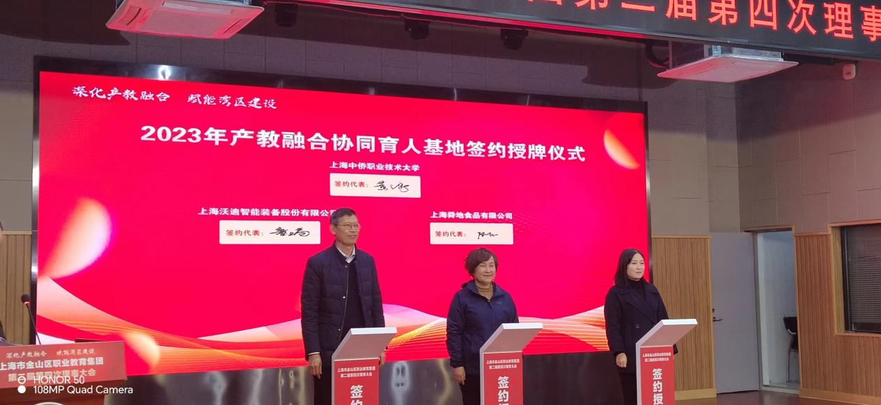 2023年,我校新增上海沃迪智能装备股份有限公司和上海舜地食品有限公司两家上海湾区产教融合协同育人基地。会上,黄副校长代表学校,与企业代表签约授牌。