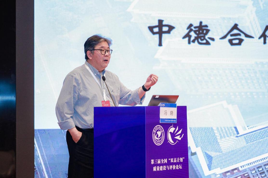 副校长冯晓教授作为特邀专家,在“校长论坛”上做了题为《 国际合作促推我校高质量发展》的主旨报告。报告从“创新价值链与教育分工、对德国巴符州双元大学办学模式的借鉴、中德高等职业教育合作助力中侨职业技术大学高质量发展”三个方面介绍了德国职业教育的典型做法和可资借鉴的经验,阐述了国际合作对我校高质量发展所起的积极推动作用。
