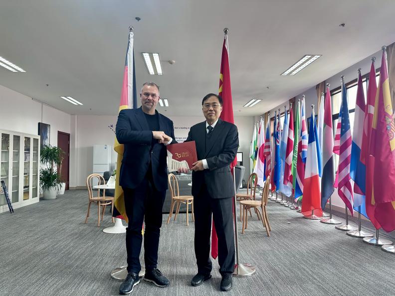 2024年3月4日至5日,德国柏林媒体设计学院(Mediadesign Hochschule),简称“MD.H”,行政总长Martin Adam、董事会成员陆佳能和学术委员会成员兼游戏设计系主任Prof. Sylvius Lack一行来访中侨大学,校长霍佳震、国际教育学院院长严蕙、国际交流处处长王凌等参与接待与会谈。
