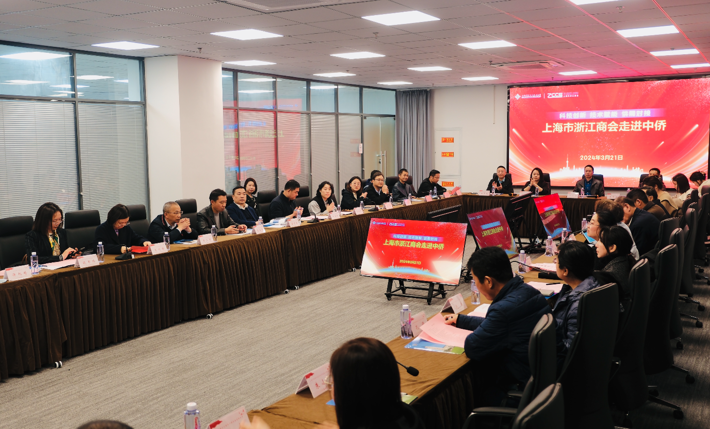 为提升新时代应用型人才培育质量,上海中侨职业技术大学积极与各行业协会、各产业对话,深入探索产教融合、校企合作新模式。3月21日下午,上海市浙江商会副会长虞奇峰、副秘书长俞秋勤、江浪科技股份有限公司董事长陈伯琴、雷汇生态集团总经理雷蕾等28家企业代表一行来校参观并开展座谈交流会。学校党委书记平杰、副校长黄立新、产教融合办公室主任魏鹏、就业办主任关睿及各二级学院院长参加会议。会议由黄立新副校长主持。