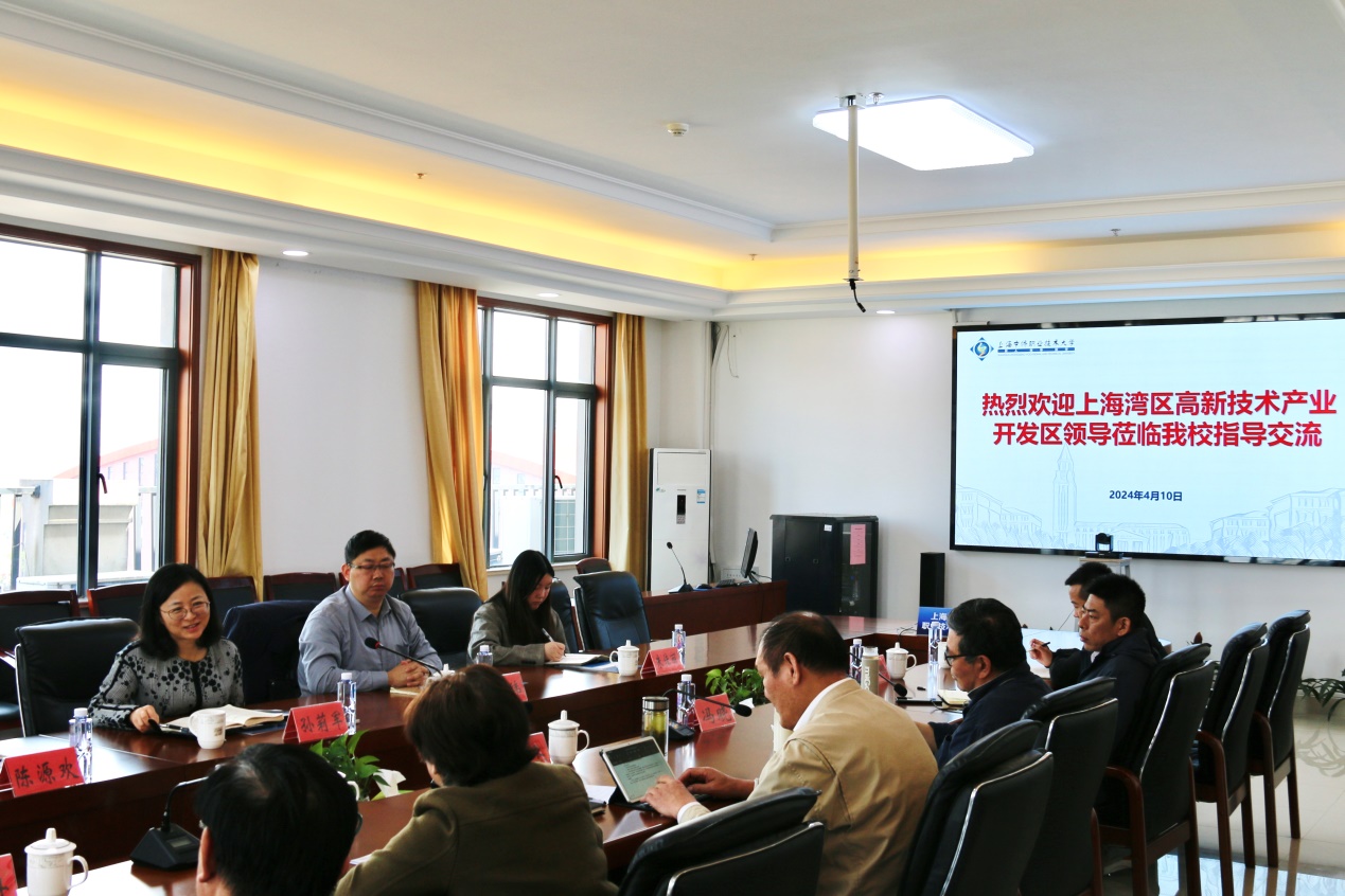 4月10日上午,上海市金山区高新技术产业开发区管委会副主任、新金山发展公司党委书记、董事长孙莉军、行政总监王纬、企业服务部经理陈源欢、企业服务部服务专员朱佳丽一行莅临我校参观交流。学校党委书记平杰、副校长冯晓、副校长黄立新、科研处处长石旺舟、就业办主任关睿、产教融合办公室主任魏鹏出席会议。
