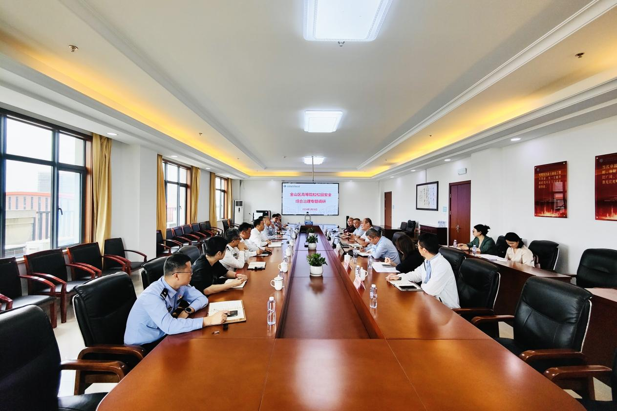 区委常委、政法委书记唐卫星一行来校调研指导校园安全工作,区委政法委、公安局金山分局、区教育局、张堰镇分管负责人陪同调研。中侨大学党委书记平杰、副书记、纪委书记朱范鑫及后保处、宣传部、信息中心负责人参加调研。