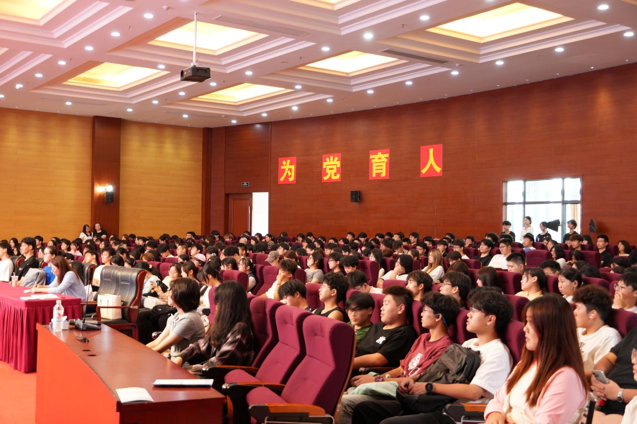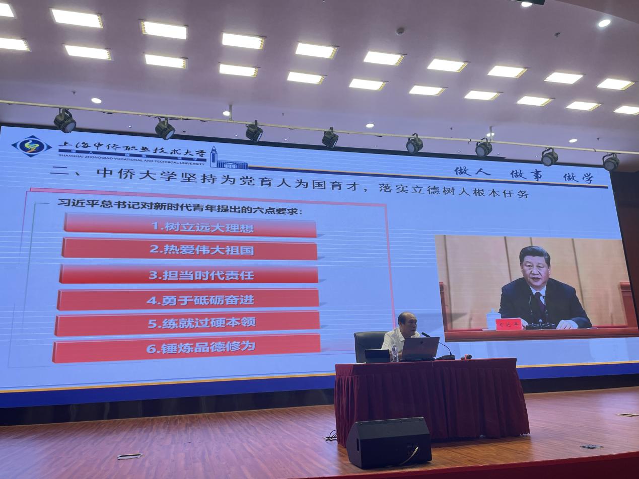为深入学习贯彻党的二十届三中全会精神,进一步落实立德树人根本任务,引导广大学子做有理想、敢担当、能吃苦、肯奋斗的新时代好青年,9月23日下午,上海中侨职业技术大学党委书记平杰亲临教学一线,以“办好职业本科教育 培养社会主义建设者和接班人”为题开讲2024-2025学年第一学期“开学第一课”。马克思主义学院常务副院长张天喜、教学副院长郭晓平、思政课教师代表及24级新生代表齐聚图文楼报告厅,同上“开学第一课”。