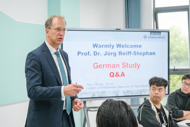 此外,斯特凡教授还在讲座前与即将赴德国学习的学生们进行了一场小型交流会。在交流会上,教授向同学们分享了德国的风土人情、音乐、美食以及留学生政策,并特别强调了学生心理健康的重要性,为学生们提供了宝贵的生活经验和心理支持。