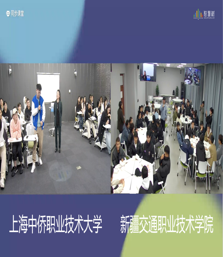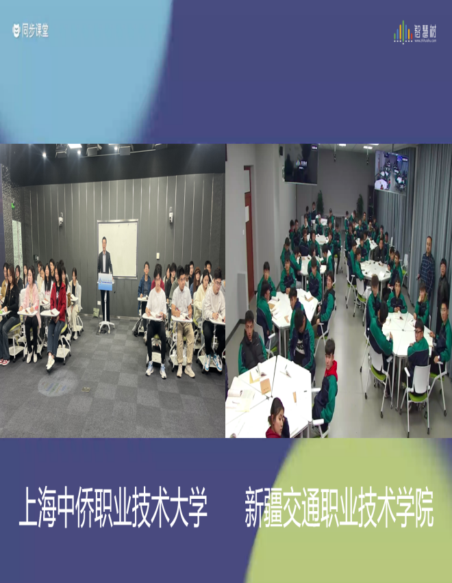 为贯彻落实党的二十届三中全会精神和全国教育大会精神,积极响应《关于新时代振兴中西部高等教育的意见》,深入实施“慕课西行”计划,促进东西部职业院校思政课建设共同发展,推进信息技术与教育教学深度融合,2024年11月1日—5日,上海中侨职业技术大学马克思主义学院与新疆交通职业技术学院马克思主义学院共同举办了2场线上线下实时联动、校际无缝对接的同步课堂活动。本次活动由智慧树平台提供全程的技术支持。