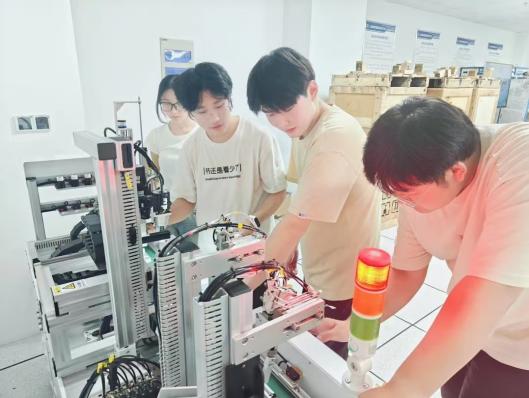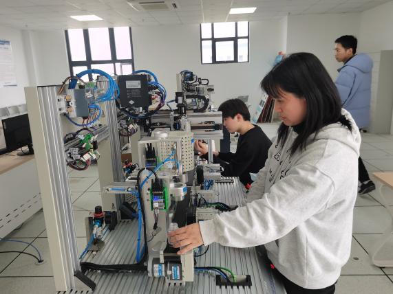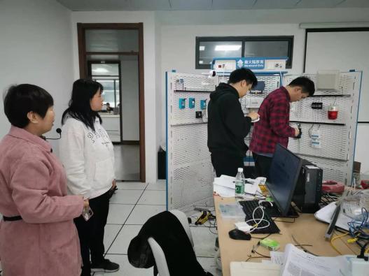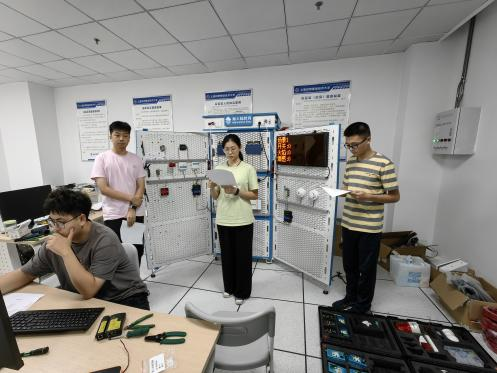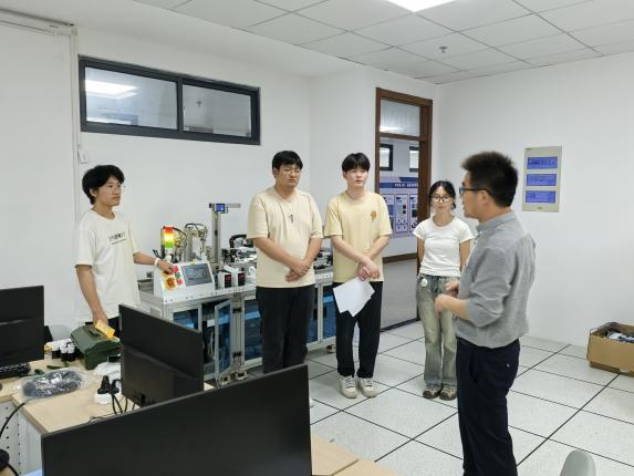 在备赛过程中,指导老师徐敏和张银巧不仅在专业上为学生提供了前沿指导,还在心理上给予了极大支持。徐敏老师利用课余时间讨论比赛方案,查阅大量文献资料,不断设计、尝试、优化参赛方案的同时根据每个学生的特点和能力,量身定制训练计划,并帮助他们建立自信,克服赛前紧张。张银巧老师在竞赛期间不断学习最新技术,确保教学与实践紧密结合,为学生的发展提供更强有力的保障。在备赛冲刺阶段,信息工程学院参赛团队展现出顽强的拼搏精神与卓越的团队协作能力。团队成员连续多日挑灯夜战,对项目流程进行反复推敲与优化。团队成员深入钻研PLC原理与编程,精心准备比赛资料和展示PPT,反复修改至最佳状态,将解说稿修订至第20版,PPT完善至第7版,以确保内容精准和展示自信。期间,他们积极总结省赛不足,通过学习视频教程、深入理解核心技术原理、反复调试程序,不断优化比赛细节。在备赛过程中,团队注重创新思维和实践能力,反复模拟演练、完善方案,以应对可能出现的多样化挑战。这种严谨态度与不懈努力,不仅帮助团队从容应赛,也充分体现了“以赛促学”的育人理念和精神追求。