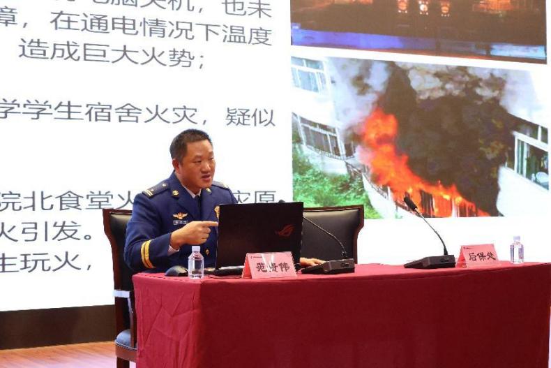 张新春处长在总结中指出,范科长从火灾警示案例、校园火灾特点、校园消防安全防范措施三个方面,给我们作了一个很精彩的报告,既有很强的知识性、专业性,又有很强的针对性和操作性,给我们上了一堂生动的消防知识教育课。帮助参会人员更加全面深入地理解消防知识,进一步增强了大家的安全意识,提高了大家应对突发火情的自救能力。“安全第一,预防为主”“隐患险于明火,防范胜于救灾,责任重于泰山”这些责任必须牢记。张新春指出,对这次培训内容各部门、各单位要组织专门的学习,建议各二级学院以班级为单位召开一次消防安全知识主题班会,希望各部门、各单位要高度重视积极配合即将开展的全校消防安全专项排查和整治行动,以一刻都不能耽误,时时放心不下的态度认真做好整改落实,共同筑牢消防安全防线。